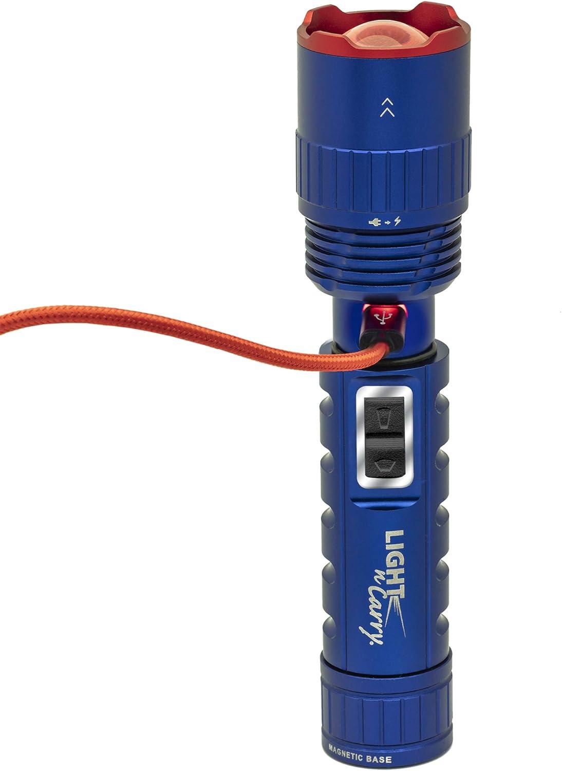 The Light-N-Carry rechargeable LED Combination Work/Torch Light, Model LNC330, provides versatile illumination for busy technicians. It features a 400 max lumen work COB LED light mode with two intensity settings and a dimmer feature, plus a 350 max lumen torch light mode with pull action zoom and a dimmer feature. It also features red emergency work light mode with a flashing flare option. It features a rugged anodized aluminum construction, a protected micro-USB charging port with charging status indicator and magnet mount. Includes braided charging cord, and a service repair coupon for a one-time, fixed-fee service after the warranty period.